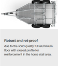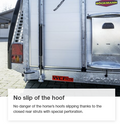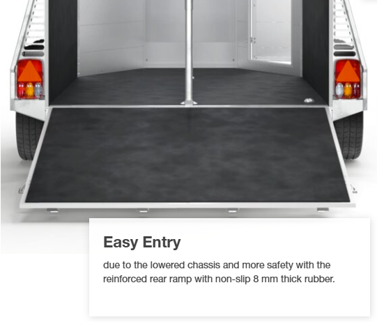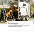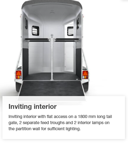 3. Front exit horse box trailers are rare in Europe (but Bockmann do still make one) - don't dismiss these trailers on that account for the following reasons: a. the floor is lower to the ground so the ramp is less steep. b. the floor and ramp are covered in rubber matting for comfort and easy rear exit. c. no large gaps or sharp edges that will unsettle a horse. d. we are sure you have no trouble reversing your horse in the stable, as it is comfortable, safe & quiet to do this in a Bockmann trailer, it is that easy - see video of this. e. horses can't bolt forwards when they see an opened door in front of them.....to name a few reasons why you can gently take your horse backwards out of a Bockmann horse trailer and enjoy the storage space/tack room and space to stand in front of your horse to feed and look after them.