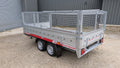The CRH Midi Braked Drop-Side Trailer is a medium-duty van trailer with an internal size of 10'7" x 5'7". Equipped with a twin axle, it is ideal for van use, offering a high payload capacity and robust construction. This trailer is designed to carry heavy loads with ease, making it perfect for a wide range of transportation needs. (Some photos show the optional mesh sides kit fitted or the ali ramp option)
