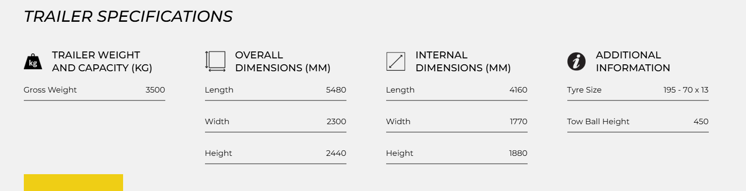 TRAILER WEIGHT AND CAPACITY (KG)