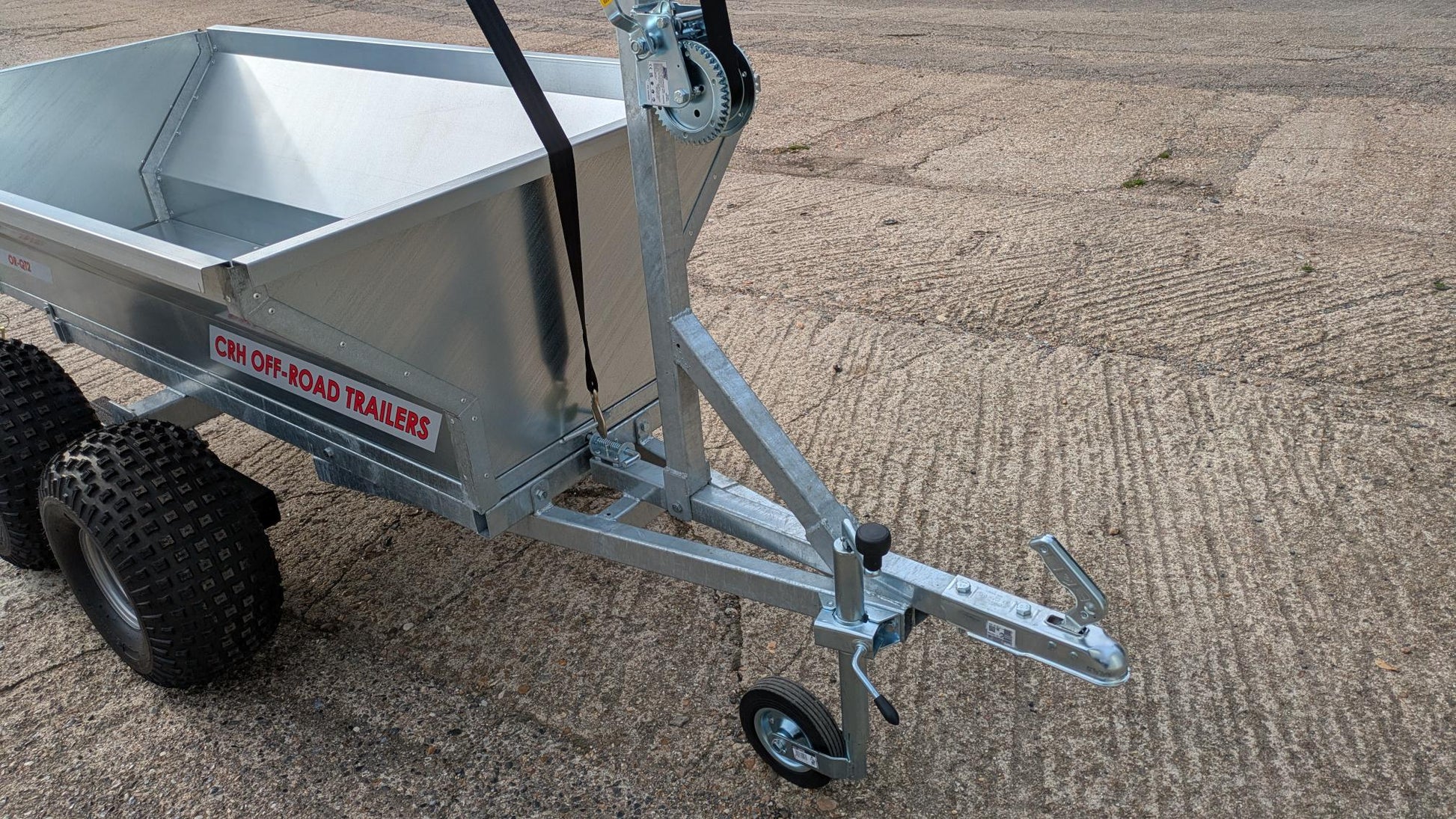 Standard jockey wheel supplied as standard from CRH. 50mm unbraked ball hitch coupling fitted.