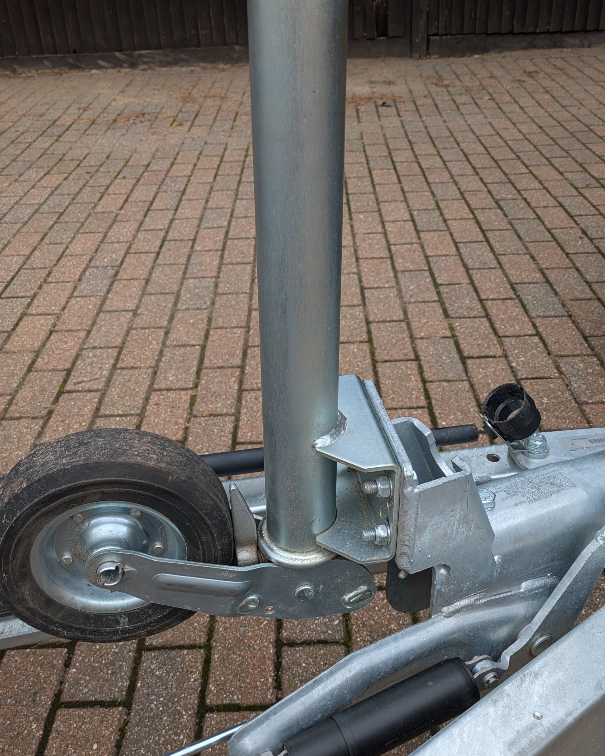 CRH 'game-changer' auto flip-up HD jockey wheel as fitted to most of our Midi & Heavy Pro trailer range.