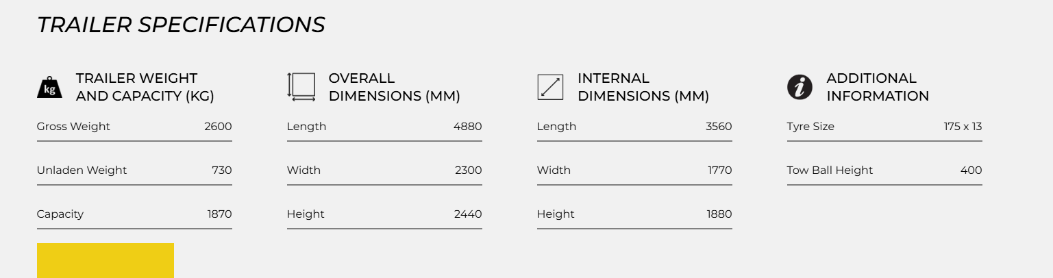 TRAILER WEIGHT AND CAPACITY (KG)